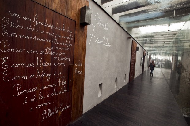 Da estrada não se percebe bem o que é. Da praia nem sequer se vê. De tal forma que o segredo manteve-se praticamente até à data de abertura. Mesmo para muita gente da região. Escondido entre o pinhal, o Areias do Seixo apresenta-se, desde fins de Abril, camuflado entre a natureza e anichado no desnível oferecido pelo terreno. E, por essa razão, nem à chegada, já à porta do hotel, se percebe a verdadeira dimensão do projecto. Mas adivinha-se desde logo, com as 18 villas atrás de nós a montarem guarda, o venerável respeito pelo meio onde estamos, quer pelos materiais usados na construção, quer por apontamentos decorativos, como uma cadeira em madeira que parece ter sido esculpida pela própria natureza especificamente para aqui.