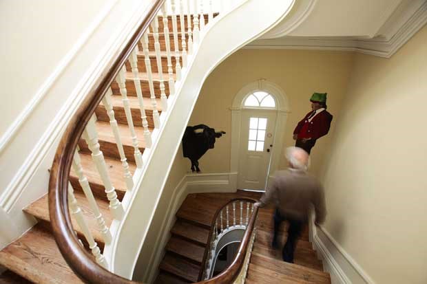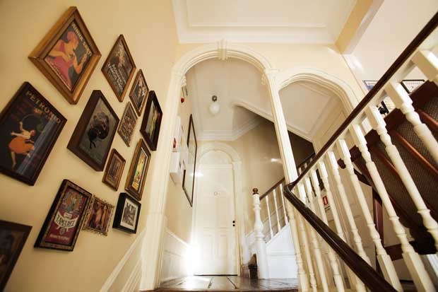A sala do primeiro andar, onde está instalada a televisão, um DVD e vários jogos é, aliás, dedicada a esse ícone do turismo da cidade e por todo o lado se vêem posters e pequenos quadros publicitários das marcas mais conhecidas do vinho do Porto. Depois, escada acima, patamar após patamar, há pinturas que congregam naquele edifício do centro histórico portuense algumas das imagens mais típicas de Portugal. Primeiro, um eléctrico amarelo, a lembrar Lisboa, depois, um grande lenço dos namorados, seguido de um galo de Barcelos, uma noite de São João, um touro frente a um campino e guitarras de fado acompanhadas de uma imagem estilizada de Amália. No último piso fica a cozinha e a sala de refeições, com uma estante colorida carregada de livros, e a porta para um pequeno terraço com vista sobre o mercado e o casario do centro histórico.