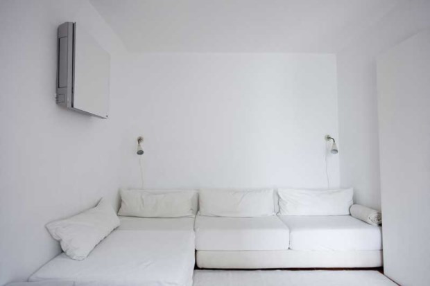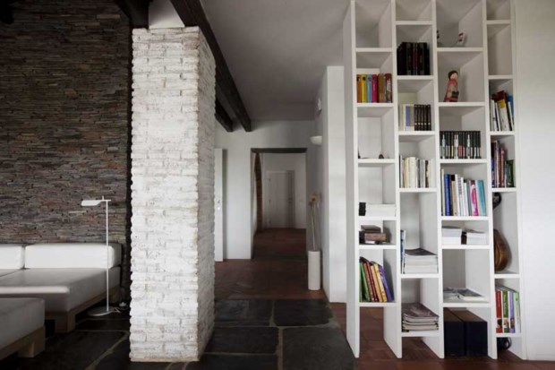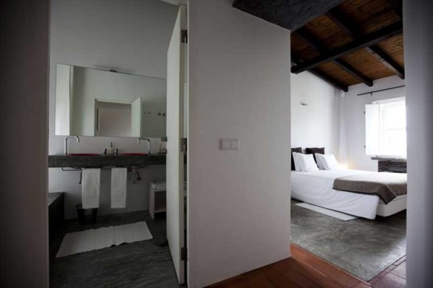 O xisto de Mourão à mostra, pedra sobre pedra, e o branco misturam-se pelas assoalhadas da casa, assim como as lajes de pedra pelo chão, a lareira na sala de estar. “São os materiais, as memórias da vivência tradicional”, contam os dois, “em convívio com a nossa escola [de arquitectura] que é mais de ''limpar as coisas''.
