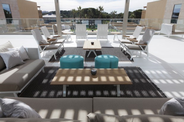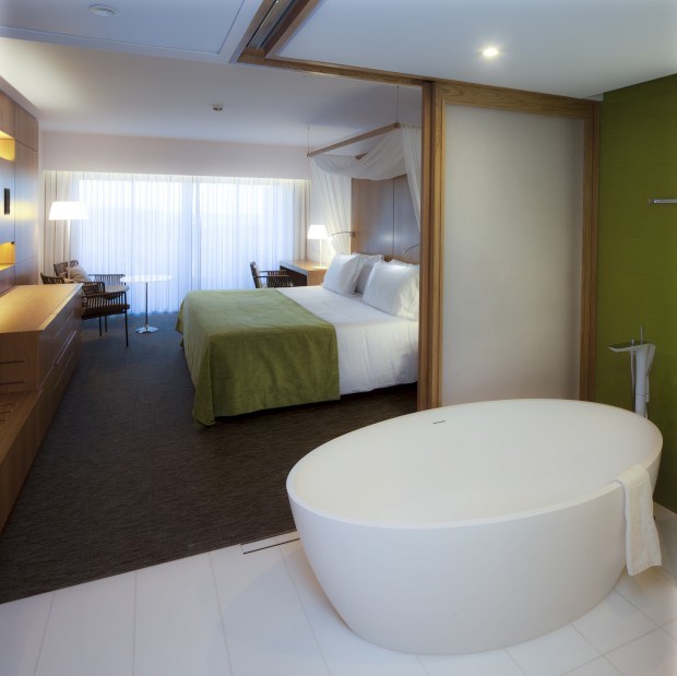 Mas esta política não é exclusiva ao exterior. E a sensação de respeito pelo meio envolvente, assim como a ideia de se estar permanentemente a admirar uma tela criada pela mãe natureza, volta a fazer-se sentir nos aposentos. No caso, uma obra que nos remete para o "oceano", como sublinha a directora comercial, Cristina Rosa, que se recusa a falar em "vista mar": "Vista mar é quando o hotel está mesmo sobre o mar, e não é o caso; por isso, fazemos questão em descrever as vistas como "oceano", "piscina" e "resort"", explica.