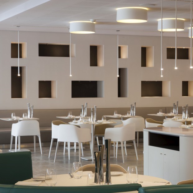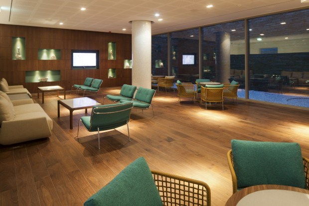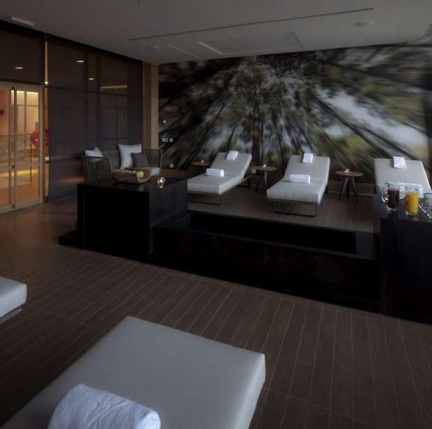 À entrada, quatro vasos gigantes ainda esperavam, em meados de Abril, pelas oliveiras que completariam um lobby marcado por transparências. Por isso, é logo à chegada que se compreende esta espécie de declaração de amor à natureza que se prolonga até onde a vista alcança.