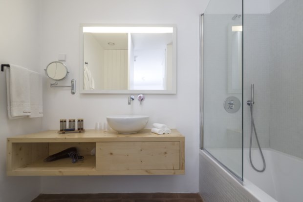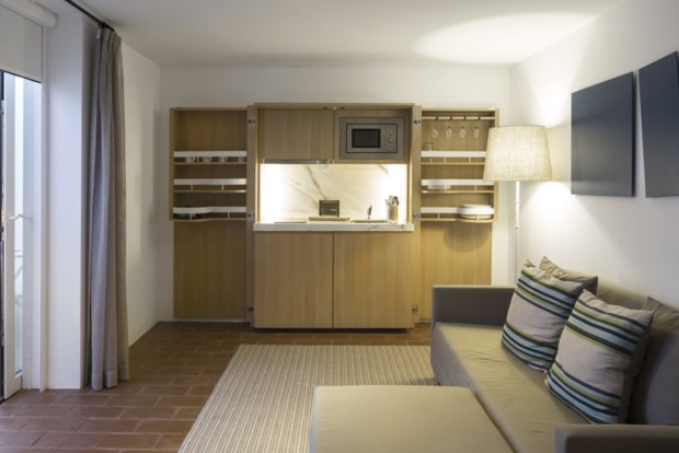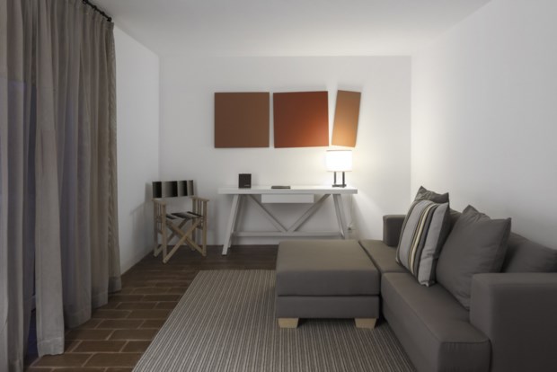 Para não destoar da paisagem, por exemplo, a unidade turística expande-se horizontalmente, numa arquitectura contemporânea e minimalista, acompanhando o suave declive da planície. O edifício principal concentra os serviços e espaços públicos do hotel, desde a recepção ao restaurante, do spa à piscina exterior (escondida no terraço), enquanto as suites se distribuem numa “aldeia” de casinhas brancas, que nascem de forma ordenada a poucos passos de distância. As ruas empedradas vão desenhando o bairro de 56 villas, cada uma com 70m2, divididos pelo quarto, sala (algumas com kitchenette integrada), casa de banho e um terraço privativo, que convida a estadas prolongadas numa das espreguiçadeiras de pano.