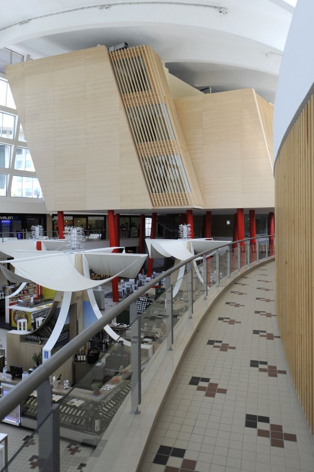 É. Os 85 quartos do mais recente hotel da cidade espalham-se por quatro pisos, mas nós ficamos logo no primeiro, na chamada "parte antiga" da unidade hoteleira. Isto porque os quartos nesta ala estão integrados na própria estrutura do mercado, ocupando o que era um dos lados da galeria comercial do espaço. Hoje, atravessamos um corredor longo, ocupado de um lado pelas portas que dão acesso aos quartos, enquanto podemos ir espreitando entre as ripas de madeira clara que, do outro lado, deixam ver o novo centro comercial que nasceu no antigo espaço de venda de peixe, carne, flores, frutas e vegetais.