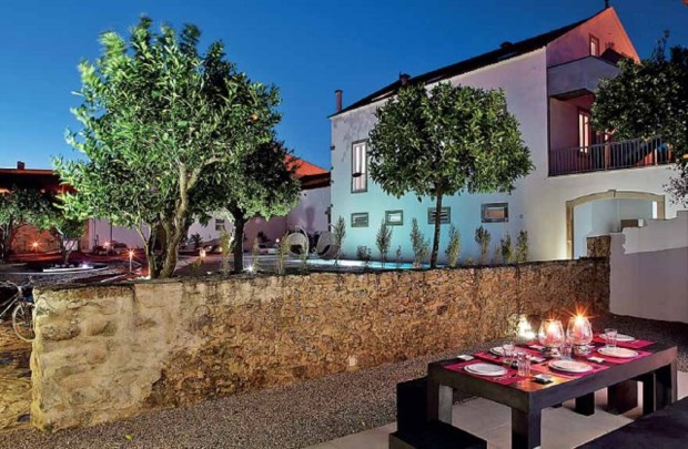 Lá em baixo, as espreguiçadeiras e os cadeirões em meia-lua convidam a um sumo natural ou a uma bebida. O jardim - muros altos empedrados e canteiros sóbrios - era o antigo pomar, do qual ficaram as velhas árvores de jasmim e as laranjeiras. É um lugar que a avó de Sofia, a morar mesmo ao lado, tem gosto em ver decorado pela neta, que ali pensou um espaço para churrascos, pequenos-almoços e lanches. Onde antes foi a antiga adega da casa, nascerá o restaurante da Aldear, a que Sofia quer dar o nome de Jasmim. Tudo tem um significado. E no empreendimento montou uma pequena loja onde são vendidos alguns produtos locais - bolos, compotas, chás - e algumas roupas.