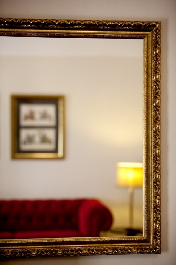 Já a pequena biblioteca revela-se uma homenagem à história quando se percorrem com o olhar os títulos das obras expostas. É aqui, através de uma trabalhada escadinha de madeira em caracol, que se descobre o melhor sítio de leitura da casa: uma salinha, segundo nos dizem, apropriada para pequenas e discretas reuniões.