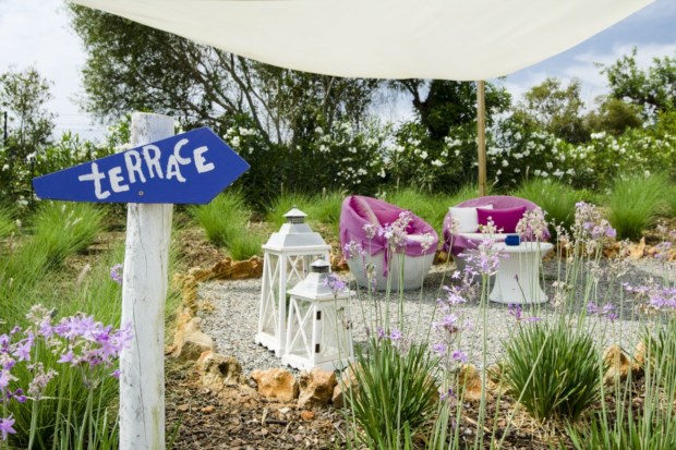 Quase nos questionamos se estamos mesmo no Algarve e em pleno Verão, mas sim, é verdade. Não nos enganámos. Em Lisboa virámos para Sul em direcção a Faro, passámos por Estoi e seguimos então as várias indicações que nos levam para o Monte da Lua. Chegámos até a ver o mar mas foi para a serra que virámos. Entrámos numa estrada de terra batida, passámos algumas casas e só depois disso, ao fundo de tudo, encontrámos esta guest-house que abriu no início deste ano.