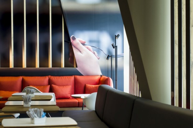 Mas hoje pede-se sempre mais e os hóspedes querem, para além dos básicos - mesmo que estes sejam eficiente e justamente servidos -, alguns rasgos de criatividade. É por isso que na recepção somos recebidos em registo high tech, com dinâmicas projecções na parede, uma inovação em estreia lusa: um "ecrã" transmite informações úteis, preços, ofertas especiais, meteorologia, tudo em registo rápido e telejornalístico. É um sinal aos hóspedes que algo por aqui está a mexer e o primeiro impacto com o novo conceito de espaços públicos Ibis - que têm a assinatura do arquitecto francês Philippe Avanzi (com muita experiência em design para as massas: desenvolveu, por exemplo, os novos interiores da McDonald"s na Europa).