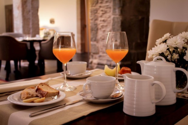 A zona da recepção tem ligação com uma outra sala, elegantemente ornamentada e muito iluminada, onde são servidos os pequenos-almoços. O claustro do antigo convento foi aproveitado para este fim, tendo sido dotado de um tecto completamente envidraçado que lhe confere uma grande luminosidade natural. A decoração, em estilo vintage, é bastante delicada, fazendo sobressair as cores suaves que marcam todo este local. Diversas peças de coleccionador foram colocadas cuidadosamente ao longo da sala, de modo a transmitir sobriedade aos visitantes.