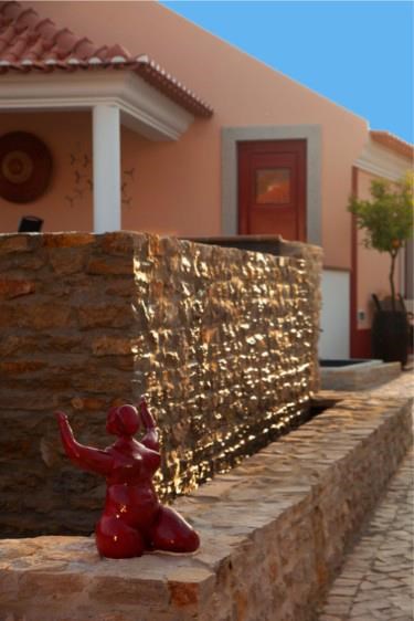As fachadas das casas são em tons de salmão e de vermelho escuro: “A ideia foi trabalhar com cores quentes”, diz Catarina Carvalho, acrescentando que todo o espaço, assim como a decoração, obedecem aos princípios do feng shui. “Não sou especialista em feng shui, mas tanto eu como a minha mãe temos curiosidade e, por isso, pedimos ajuda a uma especialista, para criar um espaço harmónico”, conta. A decoração das casas, que foi da responsabilidade de Catarina Carvalho e da mãe, cruza modernidade com mobiliário antigo e inclui muitos quadros e objectos em barro da autoria da mãe de Catarina. O nome Artvilla vem precisamente do cruzamento entre arte, porque o espaço funciona quase como uma galeria para expor as obras da proprietária, e villa, no sentido de aldeia.