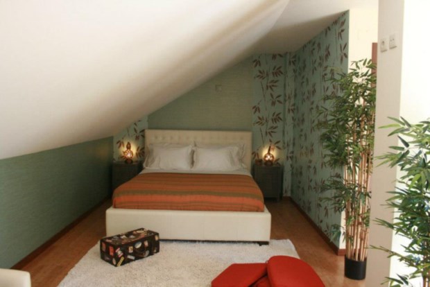O ambiente na Artvilla é familiar, é fácil sentirmo-nos em casa. Nós ficámos no quarto Bambu, uma espécie de sótão, com uma parte do tecto inclinada. A decorar o espaço, entre outros elementos, destaca-se o papel de parede, uma chaise longue e uma mala de viagem antiga.