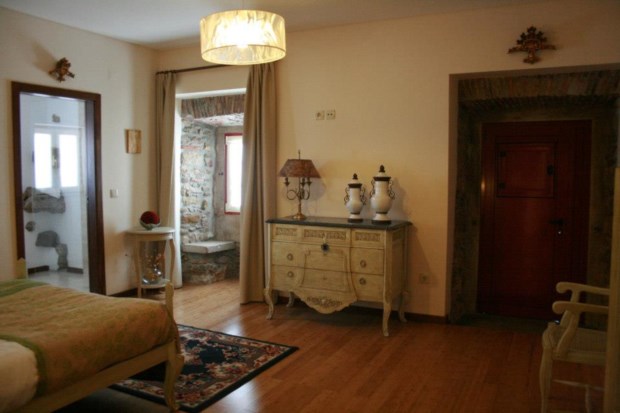 Ao todo, as quatro casas incluem quatro apartamentos e cinco quartos — duas casas foram transformadas em dois apartamentos; numa outra há dois apartamentos comunicantes; e, por fim, na casa principal há cinco quartos. Nesta, chamada Casa do Forno, há uma sala ampla, com um pé direito alto, uma cozinha aberta e uma salamandra triangular sempre a trabalhar no Inverno. É também aí que são servidos os pequenos-almoços, sem qualquer limite horário, e que podem ser levados até aos quartos e apartamentos. Se o hóspede também quiser, pode encomendar outras refeições.