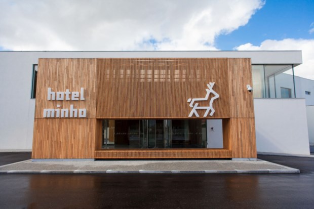 Simples, eficiente e muito luminoso, o Hotel Minho faz-nos esquecer num ápice a sua localização junto à Estrada Nacional 13, para nos transplantar para um mundo de ripas de madeira clara, mármores negros e enormes janelas de vidro que deixam a luz espalhar-se a rodos por todos os cantos do espaço remodelado e que reabriu em Setembro de 2013.