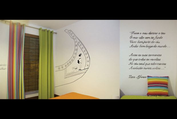 Ary dos Santos, Zeca Afonso, Eça de Queirós e até Caetano Veloso (que fez questão de criar uma canção, Menina da Ria, alusiva à cidade de Aveiro), têm os seus nomes e escritos desenhados nesta casa. Na certeza de que numa das paredes encontramos um poema criado propositadamente para esta unidade de alojamento. Uma “prenda” de uma fadista da região (Andreia Alferes) que passará, em breve, a canção.
