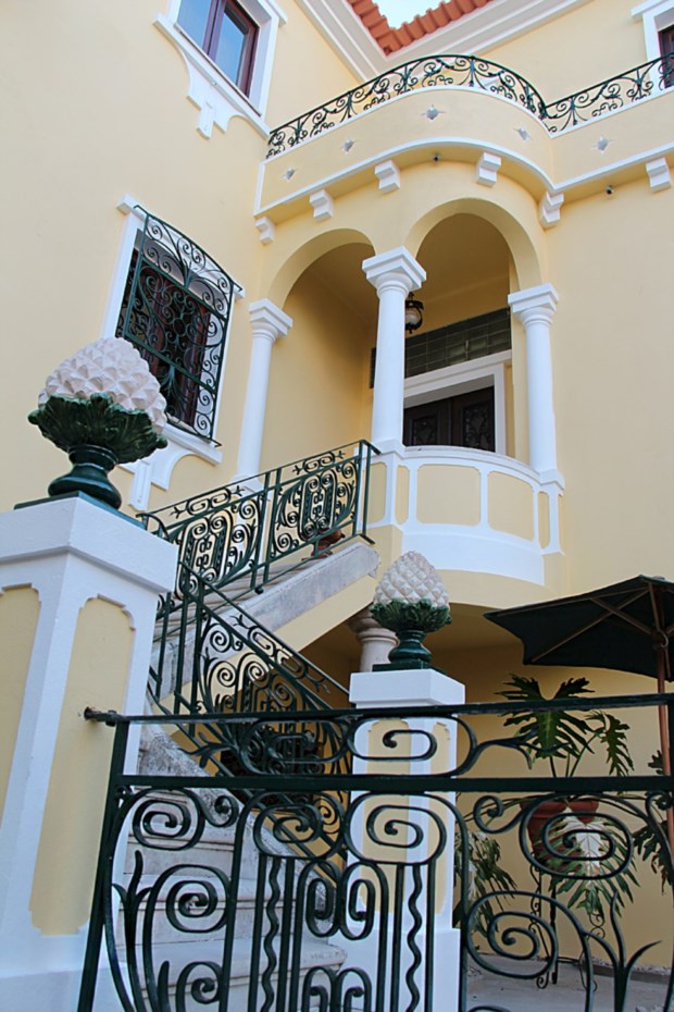 A arquitectura exterior do imóvel, uma casa senhorial dos finais do século XIX, com vários apontamentos Arte Nova, cria, desde logo, expectativas bem elevadas, que não saem goradas assim que entramos pelo edifício adentro. Logo à entrada, os corrimões em ferro forjado e os tectos trabalhados anunciam que o charme exibido na fachada da casa não foi esquecido no seu interior. Até porque, reza a história – pelo menos é o que contam os habitantes mais antigos da cidade —, esta antiga habitação da Rua Gustavo Ferreira Pinto Basto, em pleno centro de Aveiro, era palco de “grandes e longas festas, com muito requinte”.