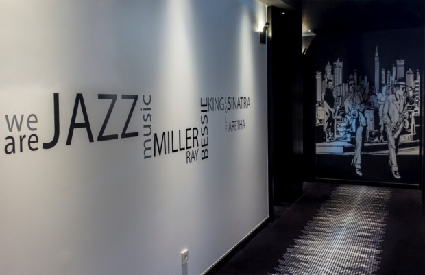 Na entrada, a recepção ocupa o centro do palco, num balcão que replica uma bateria, com dois bombos negros e pratos laterais. Em frente, teclas de piano contornam o bar do lobby, iluminado por grandes holofotes. E ao longo dos sofás e dos puffs redondos tapetes prometem que aqui a música será sempre ecléctica e o papel de parede, empilhando colunas de som de todas as formas e feitios, garante que ela nunca deixará de tocar.