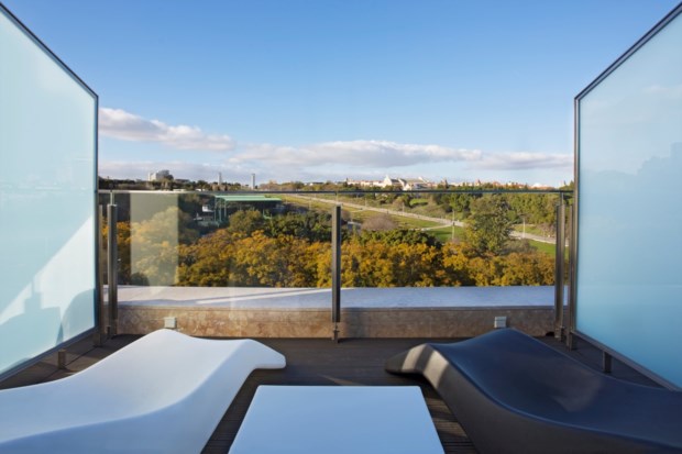 Lá fora, a varanda chama-nos para a noite amena sobre a rotunda do Marquês de Pombal e todo o Parque Eduardo VII, mas acabamos por trocá-la pelo bar lounge, atraídos pela música que nos chega do terraço, ali a poucos metros de distância. “Quero dançar nessa noite de lua cheia / Vou expressar quanto gosto de viver”, entoam os vocals de Inspiração, do alemão Praful. É no topo do edifício que encontramos o catalão Juan. Está em Lisboa por uns dias, em trabalho, e ficou alojado num outro hotel da zona. “Reparei nas luzes e vim ver o que era. É um bom sítio para beber um copo, tem uma vista fantástica”, defende, enquanto beberica um gin e nos pergunta como se chama aquele jardim logo ali em baixo ou qual é o nome do rio e do castelo que veríamos do outro lado do terraço se o breu nos deixasse agora vislumbrar. “Temos recebido muita gente, especialmente durante a semana, muitos estrangeiros e alunos de Erasmus que vivem aqui perto, e depois portugueses que viram que abriu há pouco tempo”, contam-nos ao balcão.