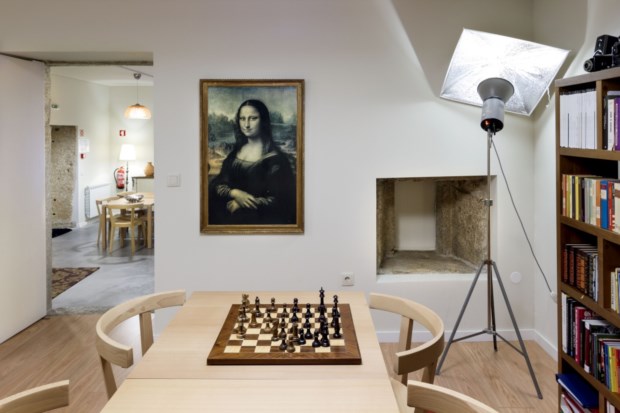 Por todo o lado há objectos que remetem para o passado — um tear, um móvel, instrumentos agrícolas pintados de azul e pendurados nas paredes —, mas o mobiliário que mãe e filha escolheram para a casa é moderno e funcional. Há revistas sobre uma mesa, mas há mais com que se entreter na sala mais pequena ao lado (a tal a que se acede directamente pela porta junto às escadas). Se não for com os jogos, pelo menos apreciando as antigas máquinas de fotografia, restos do negócio de família de António Carlos, que este guardou na casa nova-velha. As máquinas e várias fotos, algumas já bem antigas, sobre a região, que estão espalhadas por toda a casa.
