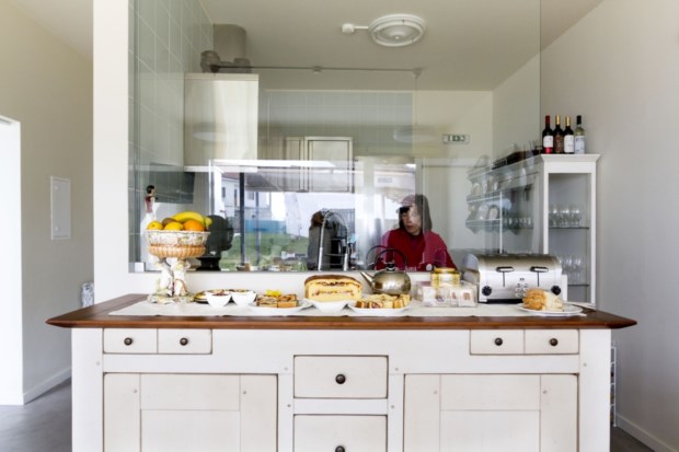 Da sala espreita-se o terreno nas traseiras que, tal como acontece na frente da casa, está coberto de relva e convida a colocar toalhas no chão e deixar-se ficar ao sol a ler um livro ou tomar um refresco. Mas isso é se o sol for quente, e não este gelo tocado a vento que hoje está. Com tanto frio lá fora, o relvado parece um sonho longínquo e só apetece mesmo ficar junto à lareira, reconfortadas pelo chá que Luísa serve, acompanhado de bolachas.