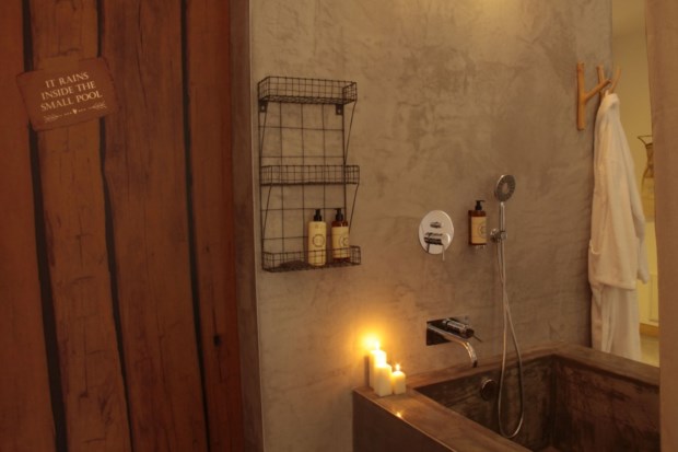 Ultrapassado o portão azul claro, é como se mergulhássemos numa aldeia tradicional da região, reinterpretada nos tempos modernos. Vamos caminhando pelo mosaico de lascas de pedra, que replica os antigos caminhos principais das povoações, e as casinhas térreas vão-se sucedendo num barro vivo, cada porta debruada de pedra alva a guardar um espaçoso quarto ou suite.