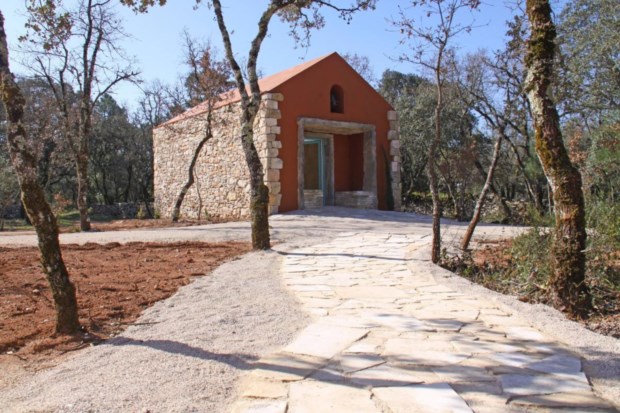 O que não existe são referências directas ao principal lugar de peregrinação do país ou à religião católica, substituídas por uma “vertente mais espiritual e de comunhão com a natureza”, aberta a todos os credos e convicções. A própria ermida é desprovida de símbolos religiosos, reinando uma simplicidade imaculada: candelabros nas paredes, bancos feitos de troncos de eucalipto crus e almofadas de palha, o altar trocado por uma parede envidraçada sobre o campo. Cá fora, o pormenor: junto à entrada, um puxador permite qualquer um fazer tocar o pequeno sino cimeiro.
