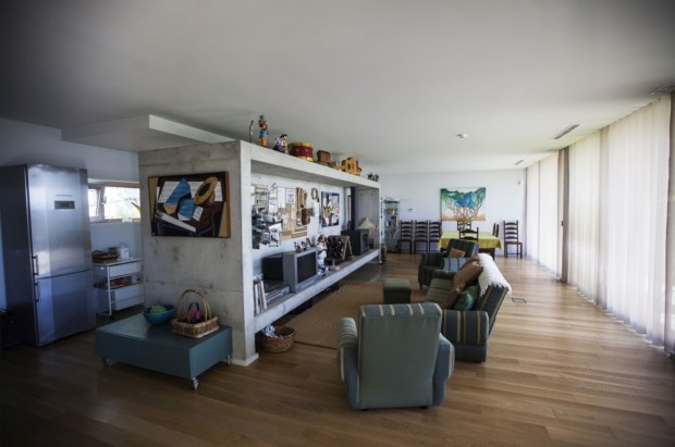 Não quis que se confundisse o edifício antigo com o novo. “Estão em ruptura, mas dialogam um com o outro”, salienta. “O betão [a vista] tem a ver com a pedra [usada nas paredes do velho edifício]. E a ferragem tem a ver com madeira [que se manteve nas caixilharias].” São outros três quartos, com uma cozinha e uma sala de estar-jantar, que podem ser alugados no conjunto.