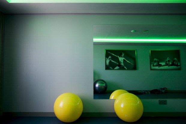 A diferença é logo marcada pelos corredores que nos conduzem aos quartos. Aqui e ali, quadras de sabedoria popular, celebrizadas pelo cante alentejano, dividem o protagonismo com cenas do Alentejo rural. “Ó minha amora madura/ Quem foi que te amadurou?”. Pelo chão, uma grossa e fofa carpete abafa os nossos passos e guia-nos por um corredor à meia-luz que parece ainda mais escuro depois de nos termos habituado à forte luminosidade do hall de entrada e do fosso que nos deixa espreitar ginásio e piscina interior — mais recatado é um spa, com a assinatura Satsanga.