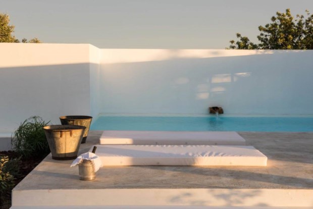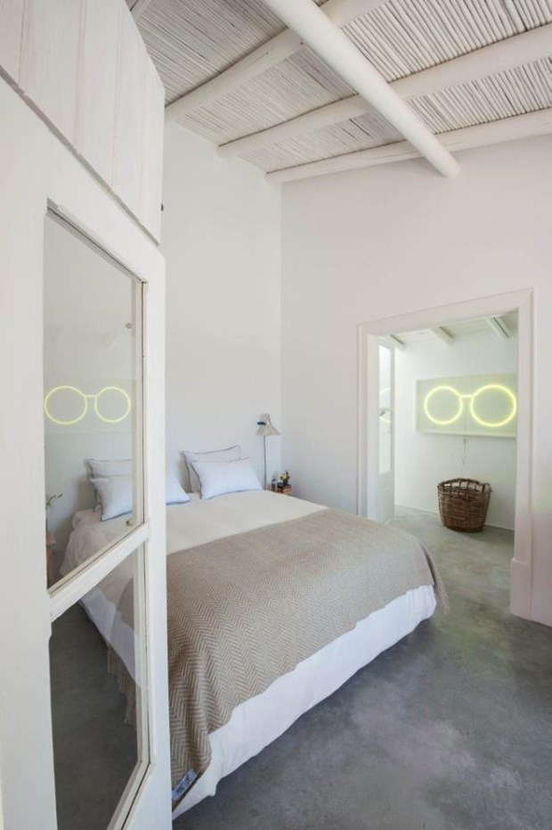 O trabalho integrado do Atelier Rua, que investigou a arquitectura tradicional da região e quis aqui vincá-la, assentou o desenho num “léxico puro e básico” e num conceito em que “só o essencial é necessário”, como explica o projectista Luís Valente. Formou-se, então, a branca Pensão Agrícola: seis quartos com pátios privativos (metade na casa central e os restantes em módulos independentes), uma piscina, a cozinha, a sala, um pátio para refeições, o espaço em volta para deambular, apanhar amêndoas, morder laranjas. “A ideia foi, com o mínimo de alterações tipológicas, tentar recuperar o máximo do espaço original, porque era um lugar com uma identidade tão forte, apesar de se encontrar em tão mau estado”, contextualiza o arquitecto. E sempre foi esta a ideia dos mentores do projecto: preservar, reabilitar, valorizar.