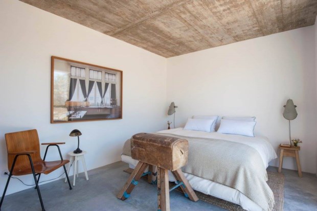 Cada quarto da Pensão Agrícola tem um nome. Nós temos na mão a chave, grande, da Suíte do Curral, que fica do lado onde nasce o sol, junto a uma fonte decorativa do pátio central. (A fonte entrou-nos na cama durante a noite e sonhámos com água.) Seja no Curral, no Páteo, na Açoteia, no Muro, na Chaminé ou no Armazém, há sempre bons livros para ler (e também revistas e livros assim-assim, como é necessário). A sensação é de estarmos numa cabana de paredes maciças, onde se elogia o cimento polido e nos cobre um tecto falso em cana algarvia.