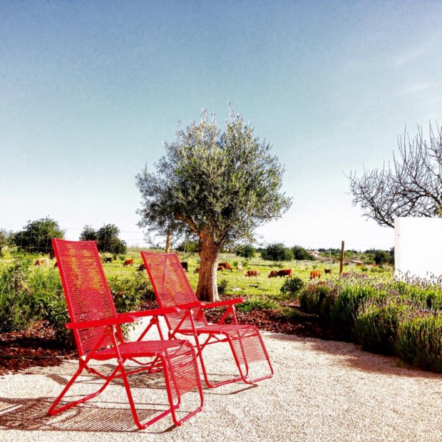 Quando acordamos, com o tempo do barrocal algarvio e as ervas secas, cheiramos nós a alecrim. A dona Bárbara oferece café, o que vem lembrar-nos que não fará tão mal assim acordar mais um pouco. Conta que chegou a brincar nesta casa, “quando ainda cá viviam os caseiros”, era ela “miúda”. Pergunta se queremos “torradinhas”. A mesa é farta. Desconfiamos que o estômago descansado no quarto-cabana tradicional-contemporâneo, já depois de um curto jejum a experimentar a água do tanque branco, não será suficientemente bravo para aconchegar todas as peças. Mas é preciso um esforço. Vamos lá.