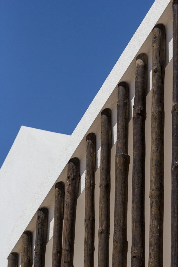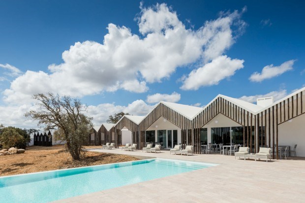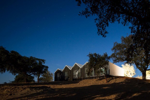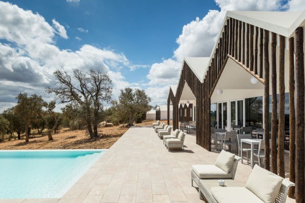 Esse não foi o caso desta pequena unidade: é que se houve algo que não foi sacrificado no impressionante e plausível respeito pelo espaço foi a beleza. De linhas simples, salpicadas por discretas assimetrias, desenhadas a régua e esquadro, cada quarto é uma casinha que, assente em estacas, parece que poderia estar aqui ou noutra parte qualquer do planeta. Pela frente, exibem-se limpas de adornos; nas traseiras, resguardam-se atrás de estacas de madeira que servem simultaneamente a privacidade dos hóspedes e a resistência dos mesmos às amplitudes térmicas, além de se revelarem eficientes sombras nos dias em que o sol alentejano não dá tréguas. Tudo nestas casinhas alvas sem telhas na sua cobertura triangular e pontiaguda parece gritar aos sete ventos que não estão aqui para se imporem.