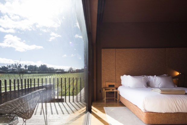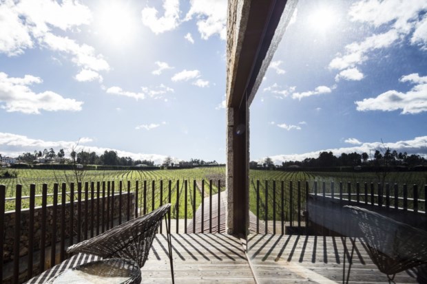 Chegamos pelo meio da tarde, chuva miúda a cair, as vinhas despidas, terra molhada a toda a volta, um cenário quase desolador — e ao mesmo tempo tão atraente. Há algo de paradoxal na nossa visão das coisas, pensamos: se por um lado suspiramos pelos dias de sol e calor, a convidar ao mergulho na piscina com vista para as videiras, também não resistimos a um sábado de Inverno, triste, cinzento e frio — desde que possamos apreciá-lo através de uma enorme janela recortada para a paisagem, enroscados numa manta, com um livro na mão e um copo de espumante na outra.