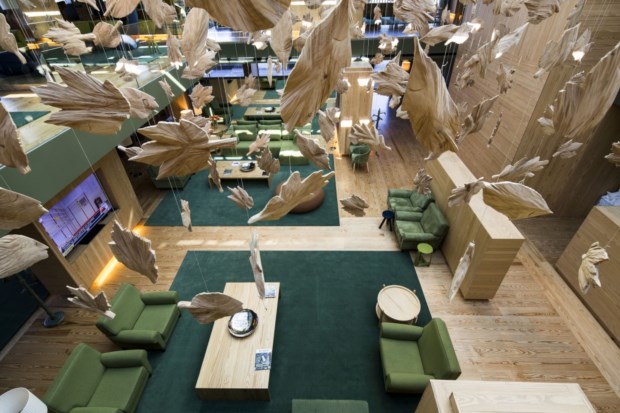 Boa média, pensamos, embora na equação tenha que entrar o facto de o Monverde se ter estreado mesmo a tempo do Verão. Mas visitamo-lo em Janeiro, num fim-de-semana de meteorologia feiosa, e a lotação está esgotada. “Gostava de lhe mostrar outros quartos, mas estão todos ocupados”, diz-nos João Portugal enquanto nos vai apresentando os espaços do hotel. Já passámos pelo edifício principal, onde estão a recepção, o restaurante, o bar e a sala de leitura — e por aqui merece destaque a escultura de Paulo Neves. São 366 folhas de videira que pendem do tecto e que representam simultaneamente algumas das castas plantadas nos hectares de vinha lá fora e cada um dos dias do ano, uma única dourada a dar símbolo aos anos bissextos.
