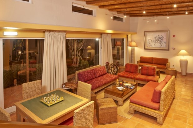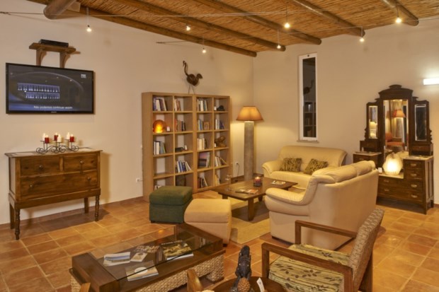 Há hóspedes a refugiarem-se da chuva inesperada nesta sala que funciona também como bar interior. Não é comum chover no Algarve, diz Hélder. Ainda assim, reconhece que o grande problema da região é o Inverno – a abertura foi em plena estação fria e o proprietário admite a necessidade de criar um conjunto de produtos e serviços para contornar isso. Já há acordos com empresas e profissionais locais para passeios pedestres, aulas de ioga, há três massagens disponíveis no gabinete, sauna, e bicicletas para pedalar livremente ou com um percurso definido. Quando aqui estivemos, os dias já estavam longos e o sol, quando apareceu, nem sempre trazia raios quentes. Mas não foi a meteorologia que nos impediu de dar umas braçadas na piscina. Ainda assim, nos planos de Hélder estão uma cobertura e uma bomba de calor.