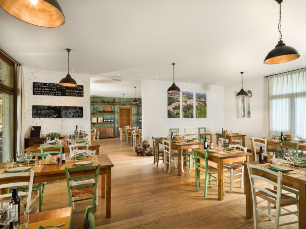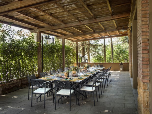 Foi então que a história da herdade italiana se cruzou com um gigante alemão. O grupo TUI AG adquiriu a propriedade — por cerca de 250 mil euros, diz-se — e deu início ao plano ambicioso: “dar nova vida a esta bela adormecida”, recuperando o edificado para transformá-lo num resort. O primeiro passo do monumental projecto foi restaurar o antigo burgo, dividindo os edifícios entre 48 apartamentos para venda e pequenas lojas no rés-do-chão. O antigo celeiro onde se secavam as folhas de tabaco foi igualmente recuperado e transformado no boutique hotel La Tabaccaia, com 31 quartos, a única unidade hoteleira do complexo turístico até à abertura do novo cinco estrelas, no lado oposto da rua. Foi aqui que ficámos alojados, num quarto com o tecto original em vigas de madeira e mobiliário simples e contemporâneo. Espalhadas pela herdade, existem ainda dezenas de villas e casas agrícolas — recuperadas ou à espera de comprador — e um bloco de novos apartamentos para alugar.