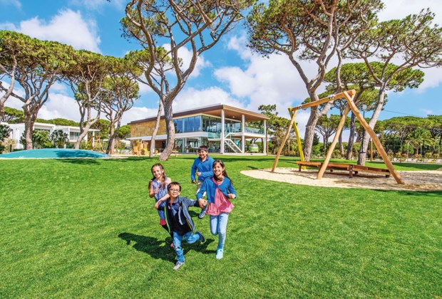 A vida de biberons e fraldas parece incompatível com a ideia de luxo mas foi esta combinação que a marca Martinhal quis explorar. O seu resort em Cascais, que recupera um antigo hotel no meio da Quinta da Marinha com mais de 80 quartos, está feito para conjugar as necessidades de uma família que chega lá sem biberons nem esterilizadores, berços ou banheiras, mas faz um telefonema para a recepção e ei-los no quarto. E está feito para a família que vai jantar ao restaurante O Terraço – que fica no piso térreo, com vista para um pátio central, o mesmo local onde é servido o pequeno-almoço – e pode deixar os filhos na “esquina das crianças” a brincar com outras sob o olhar de adultos.
