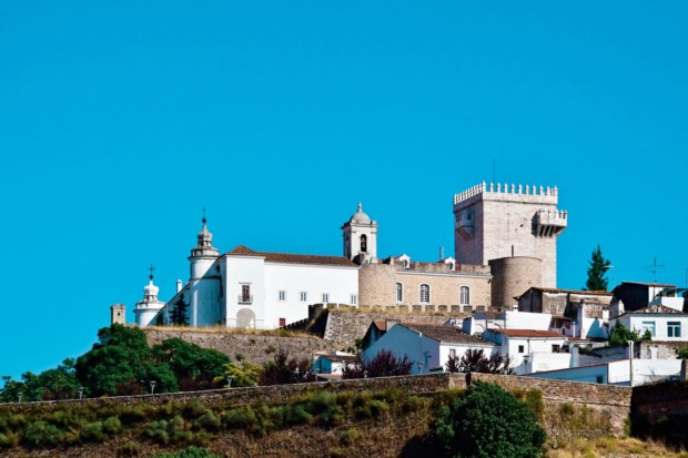 Altaneiro a todo o casario branco que compõe a malha urbana de Estremoz, o castelo, do qual se destaca a muito bem preservada torre de menagem construída em mármore da região e com 27m de altura, há muito que deixou de ter funções militares para servir de hospedaria: primeiro com gestão do Inatel e, depois, das Pousadas de Portugal, actualmente com o selo do Grupo Pestana.