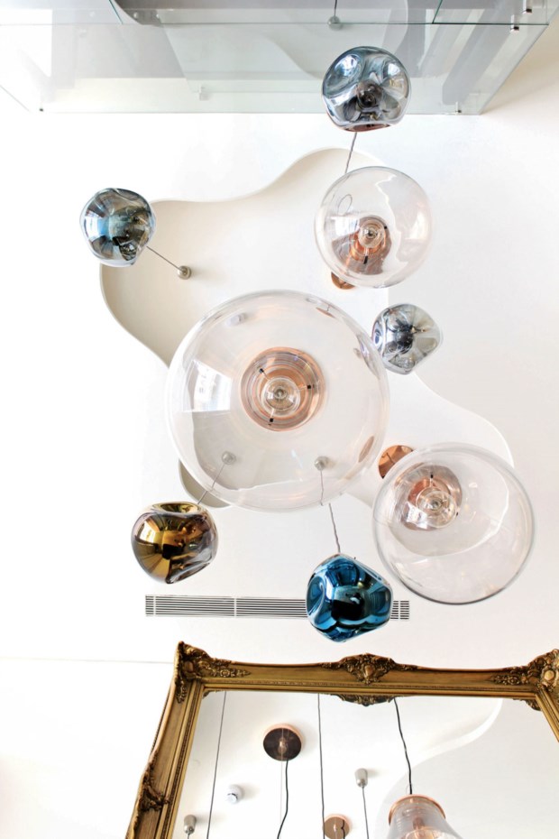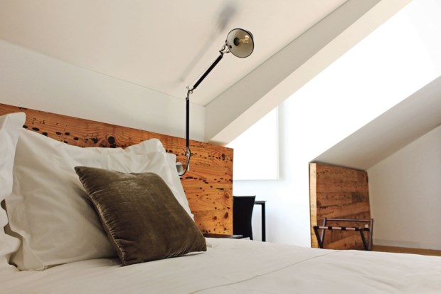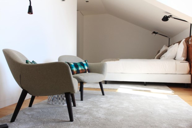 Como chove lá fora, subimos até às águas- furtadas — onde ficam os quartos com vista para as traseiras dos prédios da Rua Ivens e para o Castelo de São Jorge — para nos pormos confortáveis. Há chinelos e roupões. Voltamos para baixo, abrimos a garrafa de vinho e experimentamos o queijo e as tostas. Não apetece ir jantar fora, mas ficar ali, na mesa de vidro, iluminada pelos candeeiros Tom Dixon e com as paredes decoradas com as fotografias a preto e branco de Rui Palha, onde identificamos a calçada das Ribas, na Ericeira. É mesmo como se estivéssemos em casa.