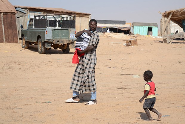 Um professor numa aldeia da Mauritânia recolhe o material escolar levado pela caravana lusa DR