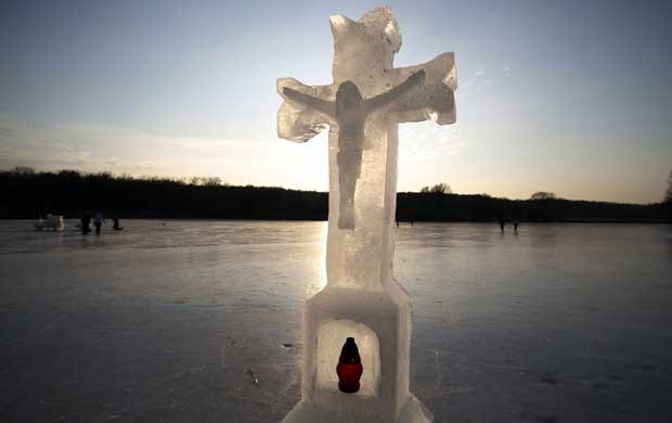 REPÚBLICA CHECA, 06.02.2012. Escultura de gelo em Dobra Voda, perto de Horice. Petr Josek/Reuters