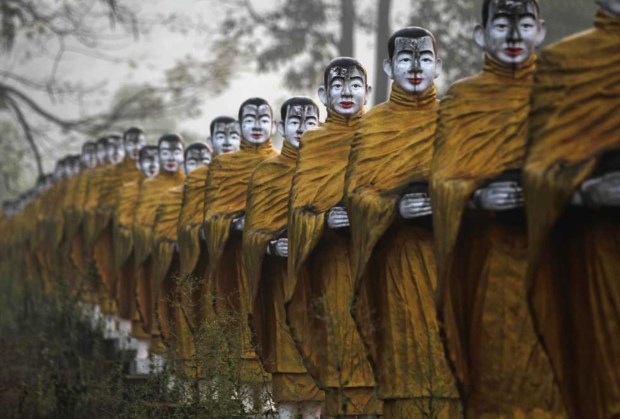 BIRMÂNIA, 20.02.2012. Estátuas de monges budistas alinhadas perto de um templo em Payathonzu. Sukree Sukplang/Reuters