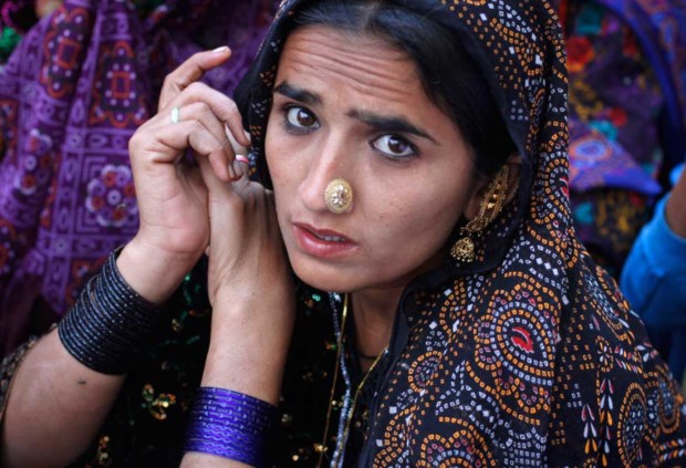 PAQUISTÃO, 29.01.2012. Três jovens paquistanesas, com as mãos decoradas com henna (fotografadas em Karachi, durante uma cerimónia de casamento colectivo de 50 pares) Akhtar Soomro/Reuters