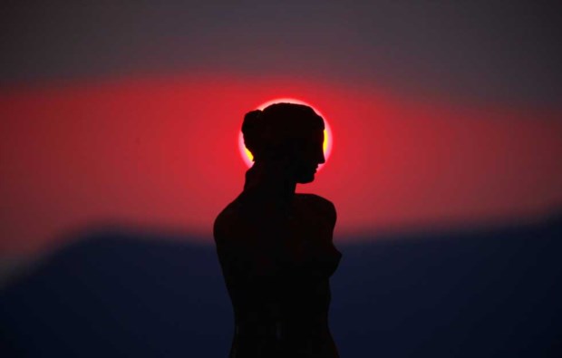 GRÉCIA, 15.03.2012. Uma réplica da estátua da deusa Afrodite de Milo sob um miraculoso pôr-do-sol visto da ilha de Santorini Yannis Behrakis/Reuters