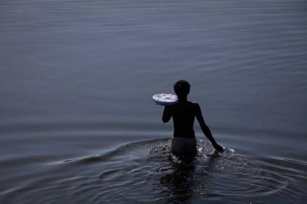 ÍNDIA, 5.10.2012. Uma mulher seca o seu sari em Allahabad, depois de o lavar nas águas consideradas sagradas de Sangam, onde confluem os rios Ganges, Yamuna e Saraswati Jitendra Prakash/Reuters