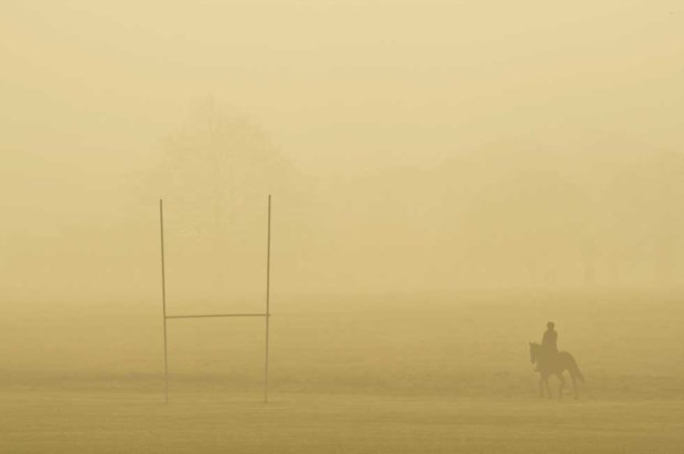 ISRAEL. 17.01.2012. Um veado sob o nevoeiro dos montes Golãs, perto da fronteira com a Síria. Nir Elias/Reuters