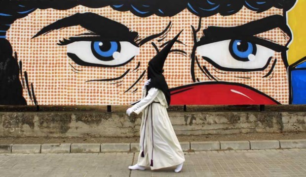 EGIPTO, 26.09.2012. Uma mulher passa por uma parede de grafitis no Cairo, perto da praça Tahrir Amr Abdallah Dalsh/Reuters
