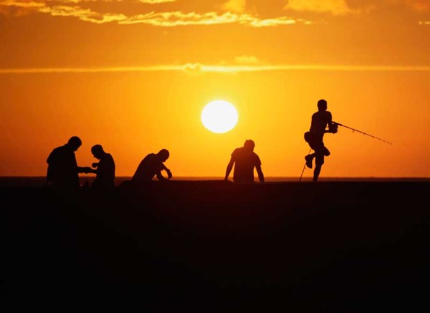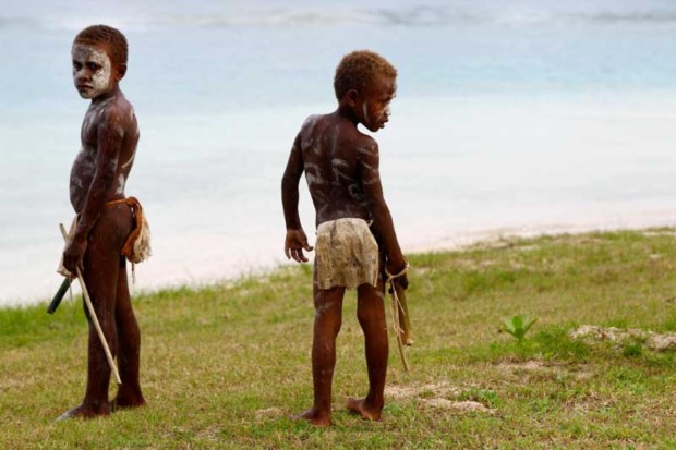 ILHAS SALOMÃO, 17.09.2012. Dois rapazinhos aguardam por um grande momento em Tavanipupu: vão participar na cerimónia de recepção ao príncipe britânico William e a sua mulher, Kate. Reuters