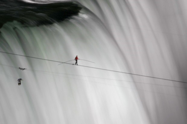 EUA, 22.02.2012. A experimentar o equilíbrio em cima de uma cerca ao pôr-do-sol em Santa Mónica, Califórnia. Gary Hershorn/Reuters