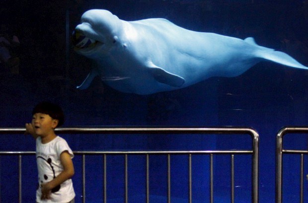 ALEMANHA, 19.10.2012. Uma menina admira um leão marinho no zoo de Frankfurt Lisi Niesner/Reuters