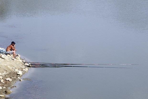 CANADÁ, 9.10.2012. Um salmão salta por comida enquanto pescadores desportivos passam, no rio Capilano, West Vancouver Andy Clark/Reuters