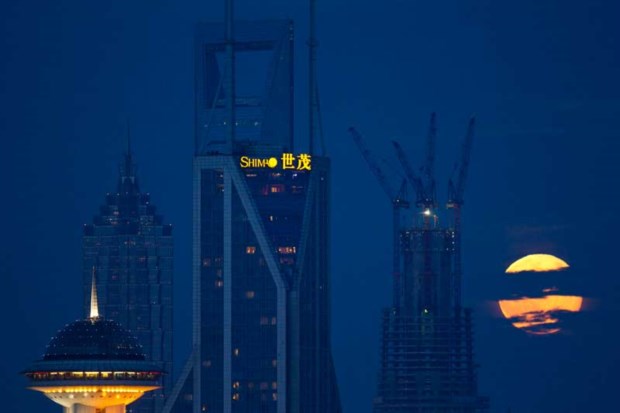 CHINA, HONG KONG, 27.09.2012. A lua ergue-se sobre a "Golden Moon", escultura-lanterna de 18m de altura e 21m de diâmetro - é uma decoração urbana de um festival de Hong Kong Bobby Yip/Reuters